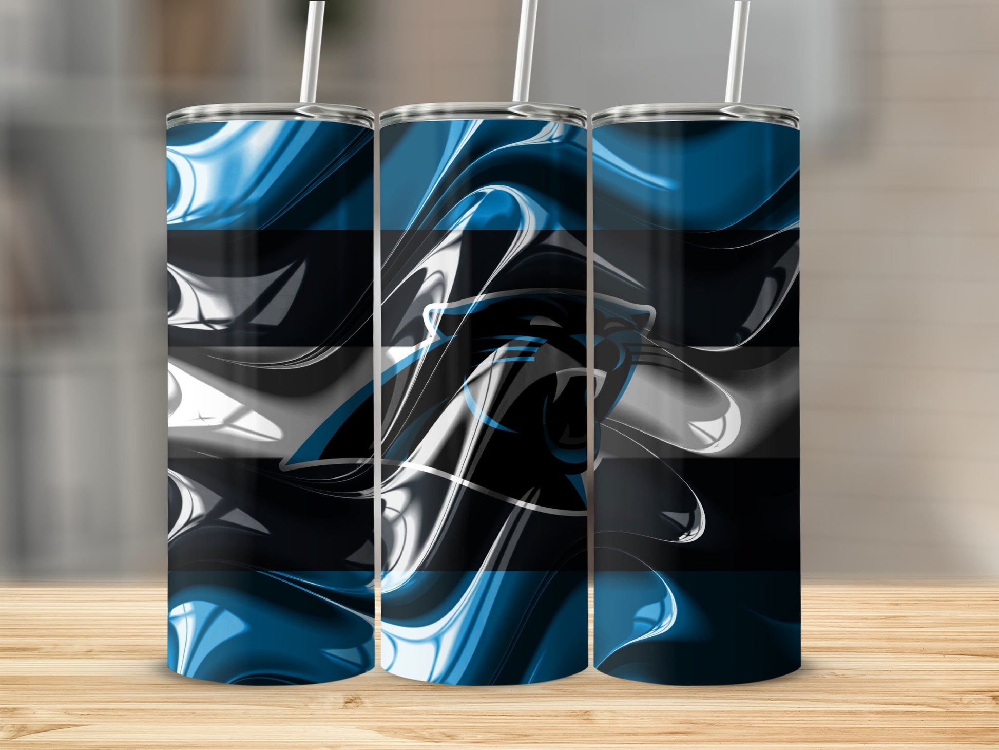 This Carolina Panthers inspired tumbler features an abstract graphic design perfect for expressing fandom. Ideal for any Panthers fan who loves unique artwork style design.
