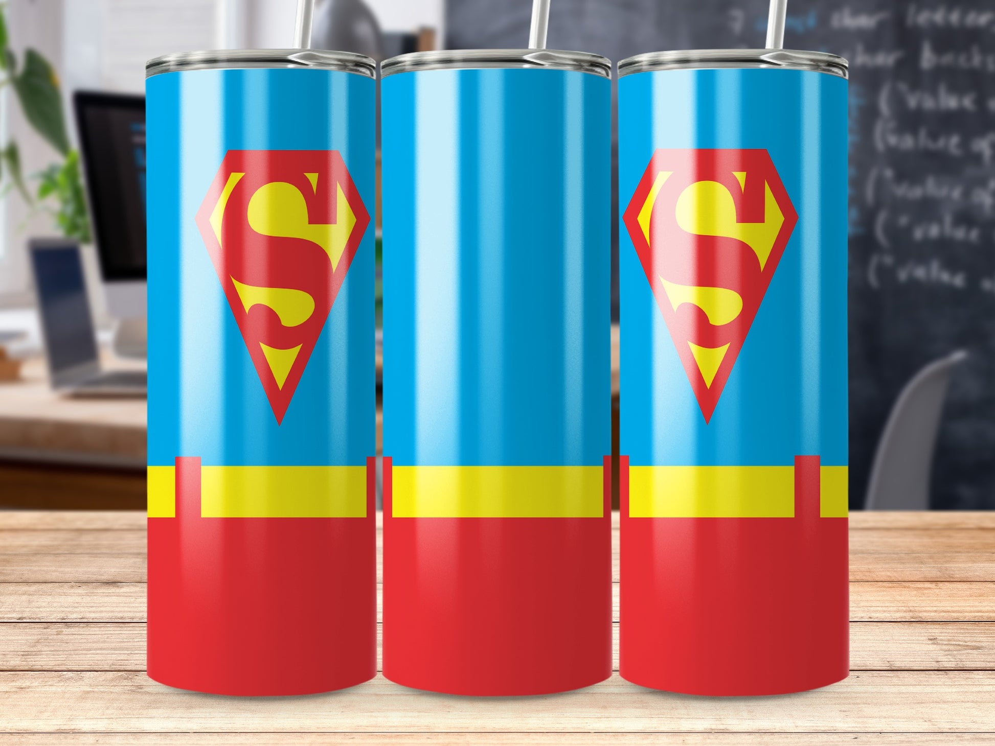 Enjoy your favorite beverage in this vibrant tumbler featuring the iconic Superman emblem and colors. This unique design brings a touch of superhero flair to your daily routine. Perfect for fans.