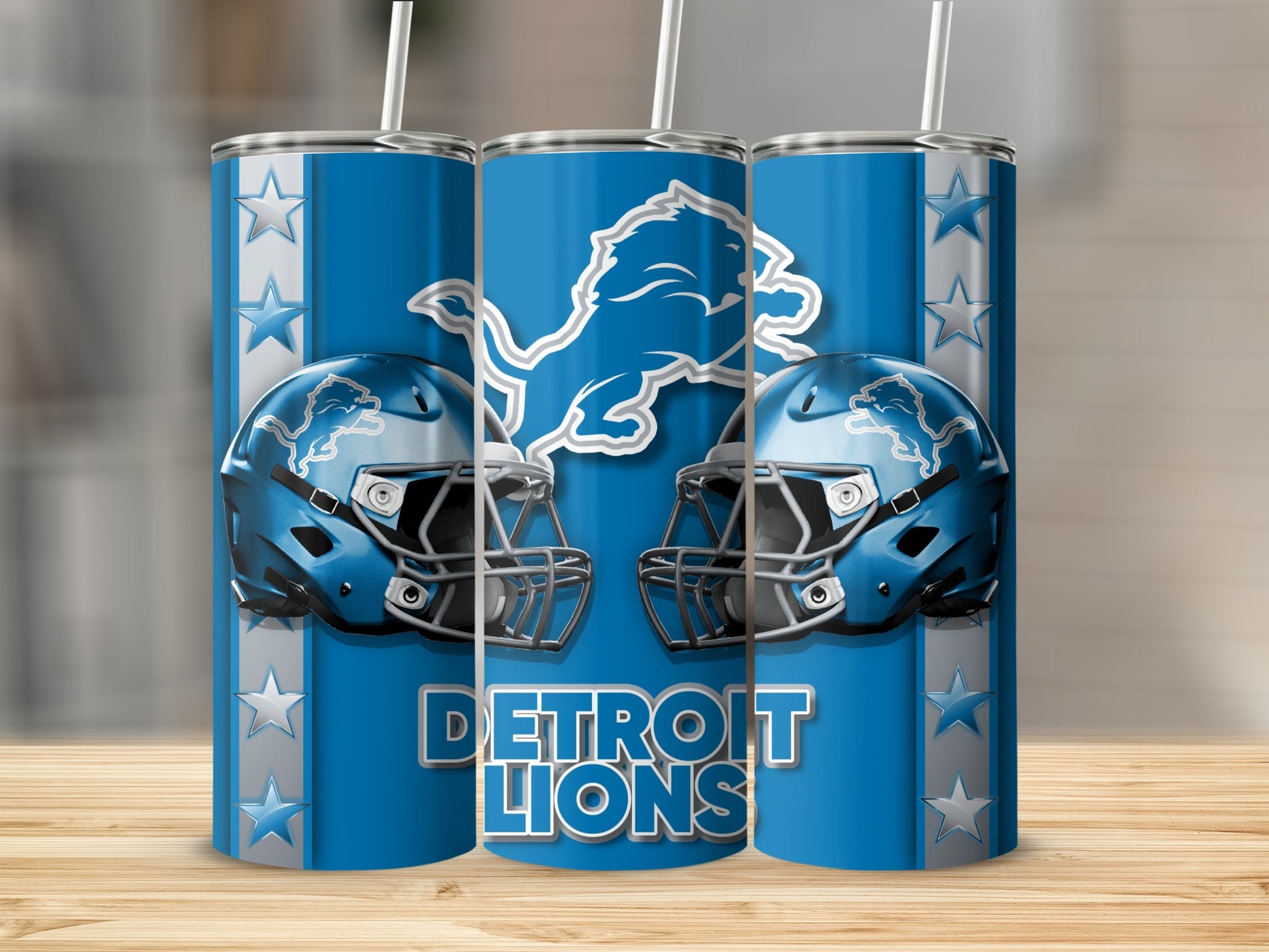 Showcase your team spirit with this striking Detroit Lions tumblers design. Featuring the team's iconic logo and helmets this tumbler is perfect for any Detroit Lions fan.