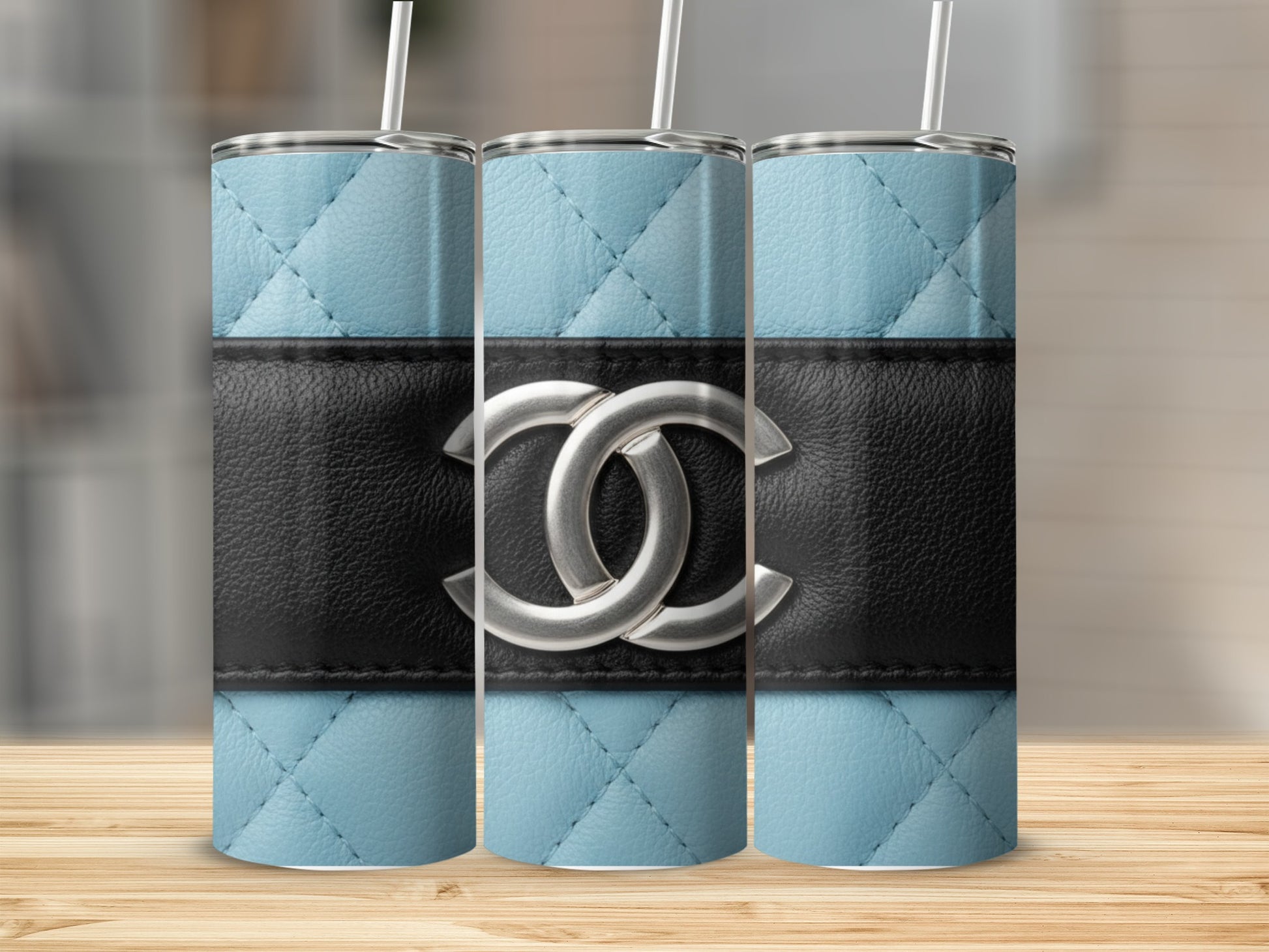 Light Blue Quilted Surface Black Band Silver Logo Tumblers