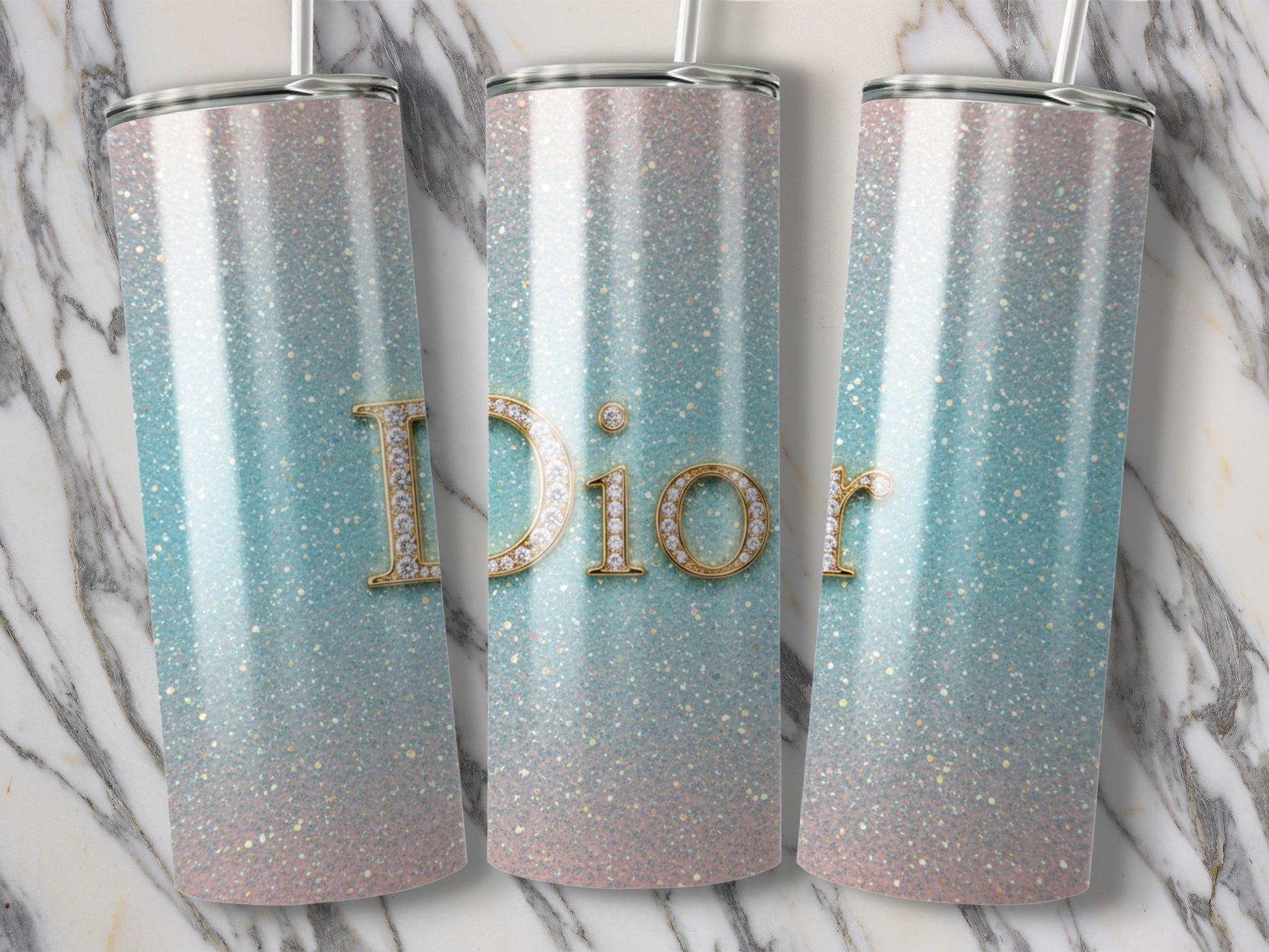 Dior Gold Letter Design On Glittery Gradient Tumblers