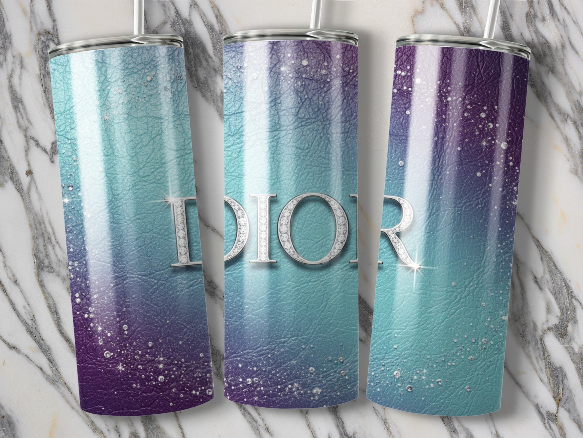 Showcase your style with the DIOR Sparkling Text Tumblers featuring a stunning turquoise and purple gradient design. Embellished with sparkling accents, this tumbler elevates your daily life.
