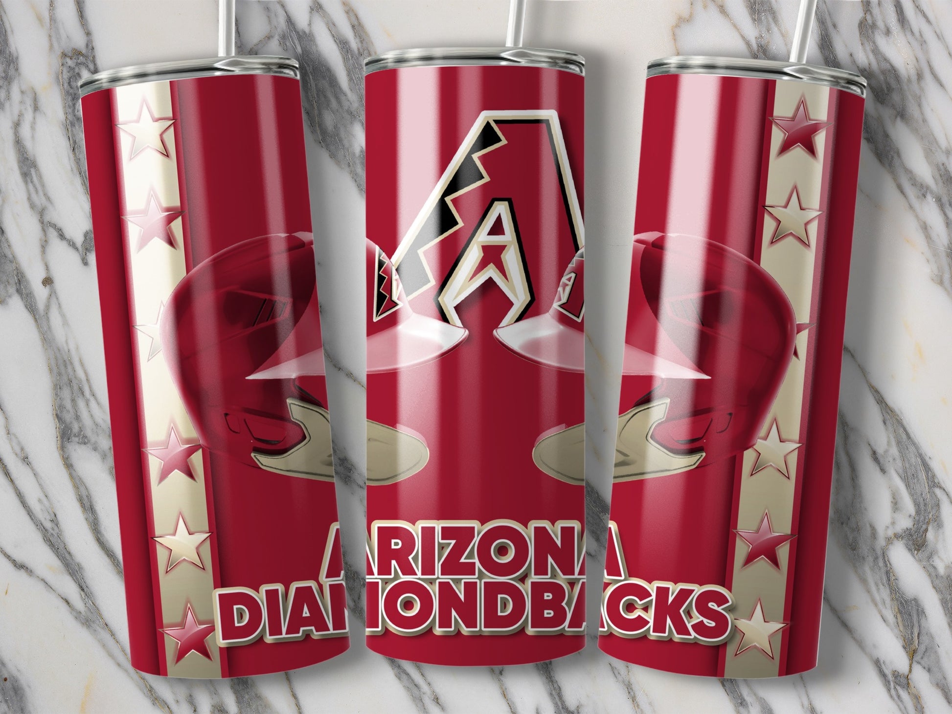 Show your love for the Arizona Diamondbacks with this unique Tumblers design! Featuring baseball helmets and the team logo this design is perfect for any baseball fan.