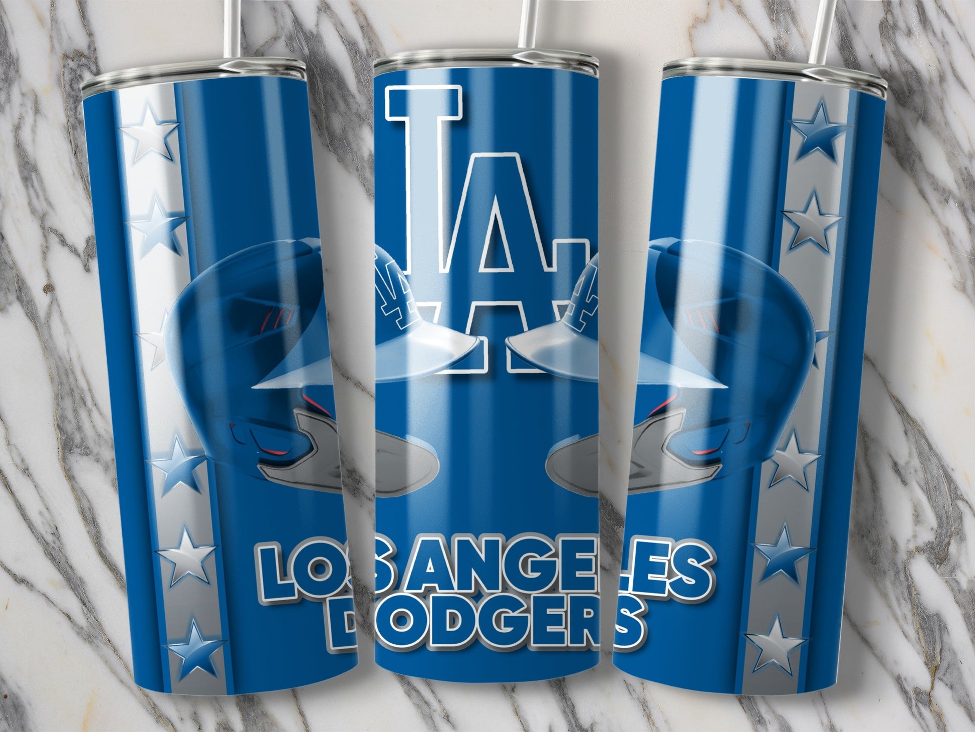 Level up your drinkware game with this themed tumbler. Featuring a baseball helmet Los Angeles Dodgers themed design, this tumbler will surely catch the eye of all baseball fans!