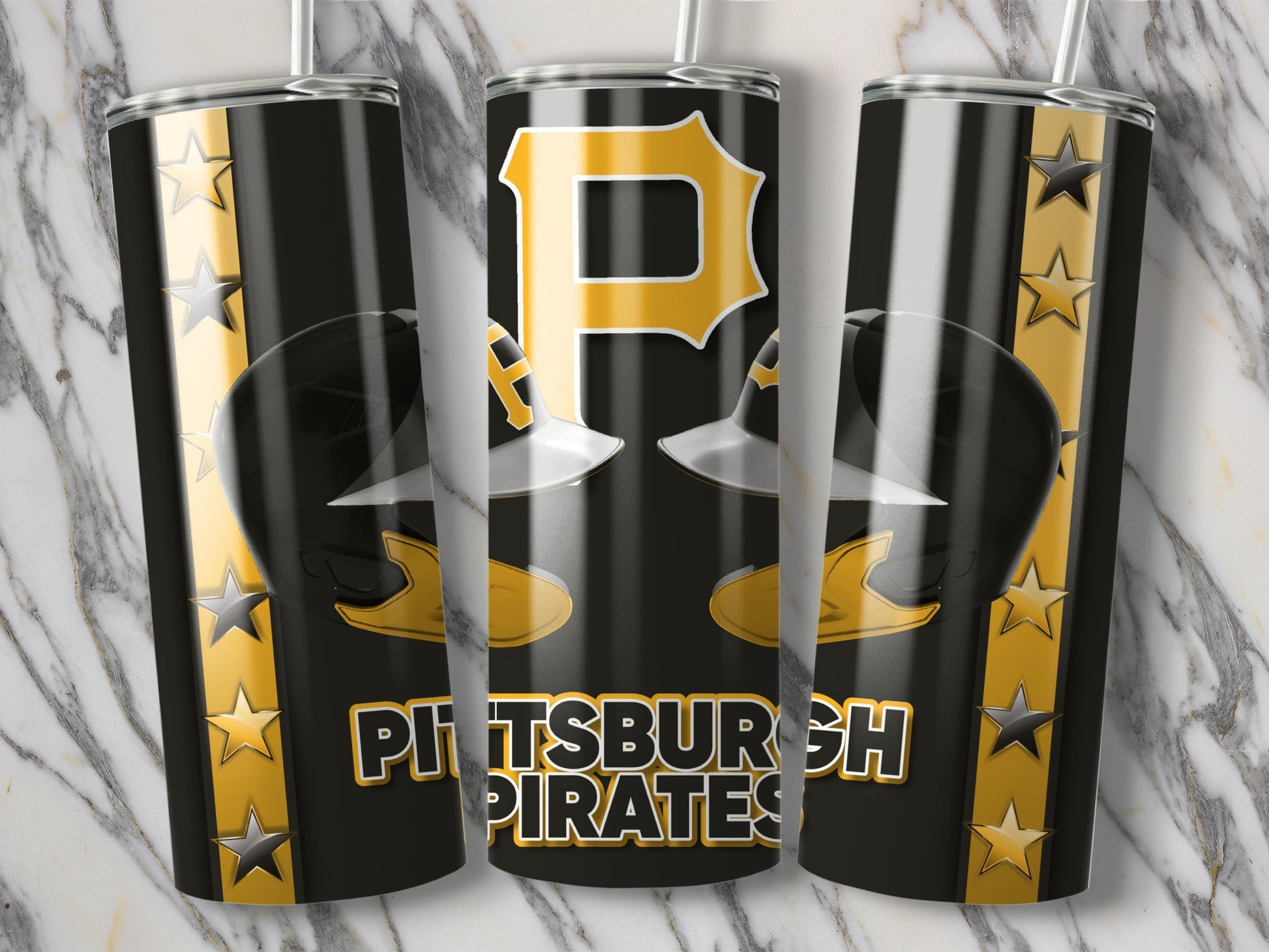 Get ready to show off your Pittsburgh Pirates pride with this unique tumbler! Featuring the iconic P logo and team helmets this stylish drinkware is a must have for every fan.
