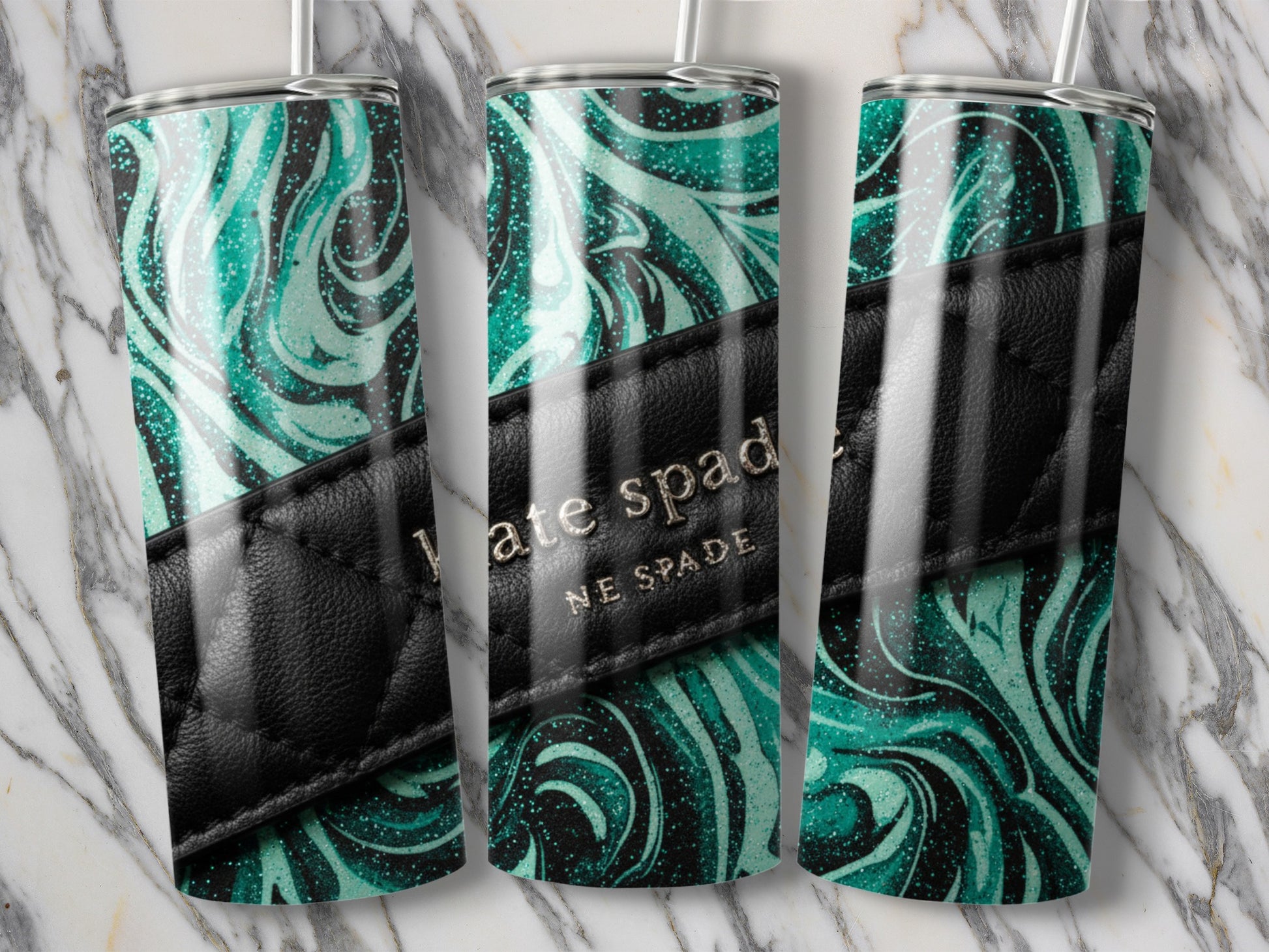 Kate Spade Inspired New York Green Swirl Pattern Tumblers