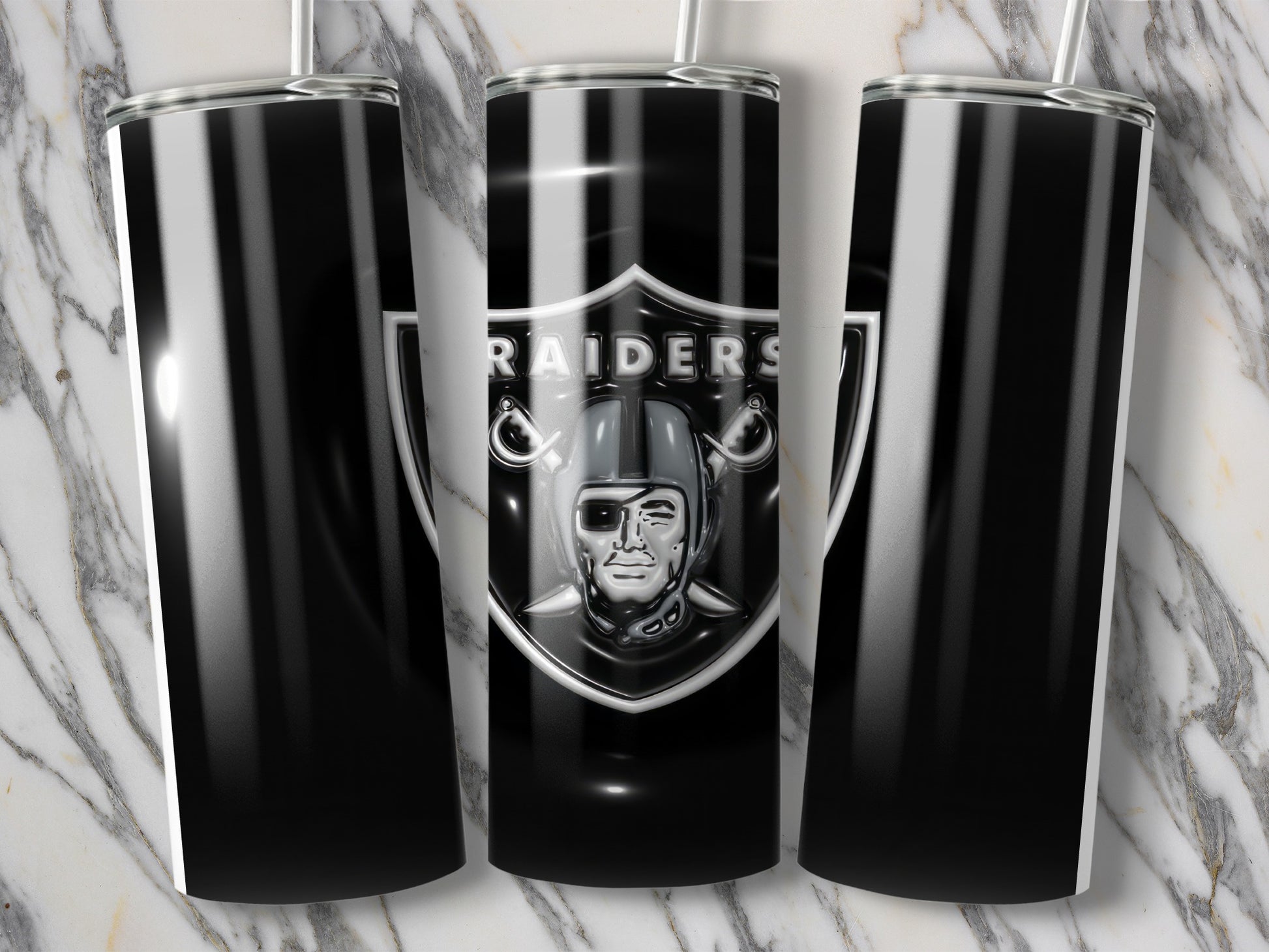 Show your team pride with these custom tumblers. Perfect for game day or everyday use, these tumblers feature the iconic Raiders logo. A great gift for any Raiders fan or a stylish addition to your own collection.