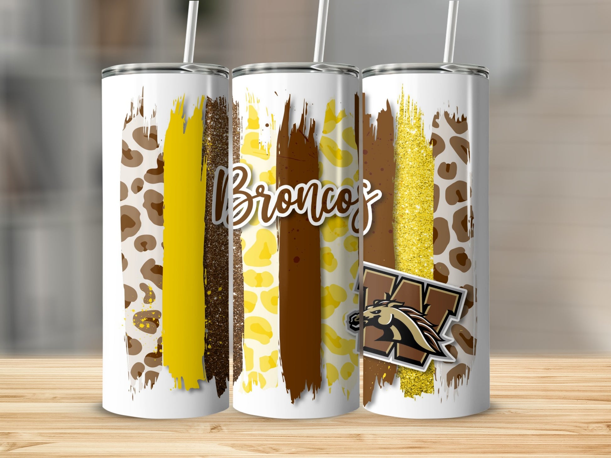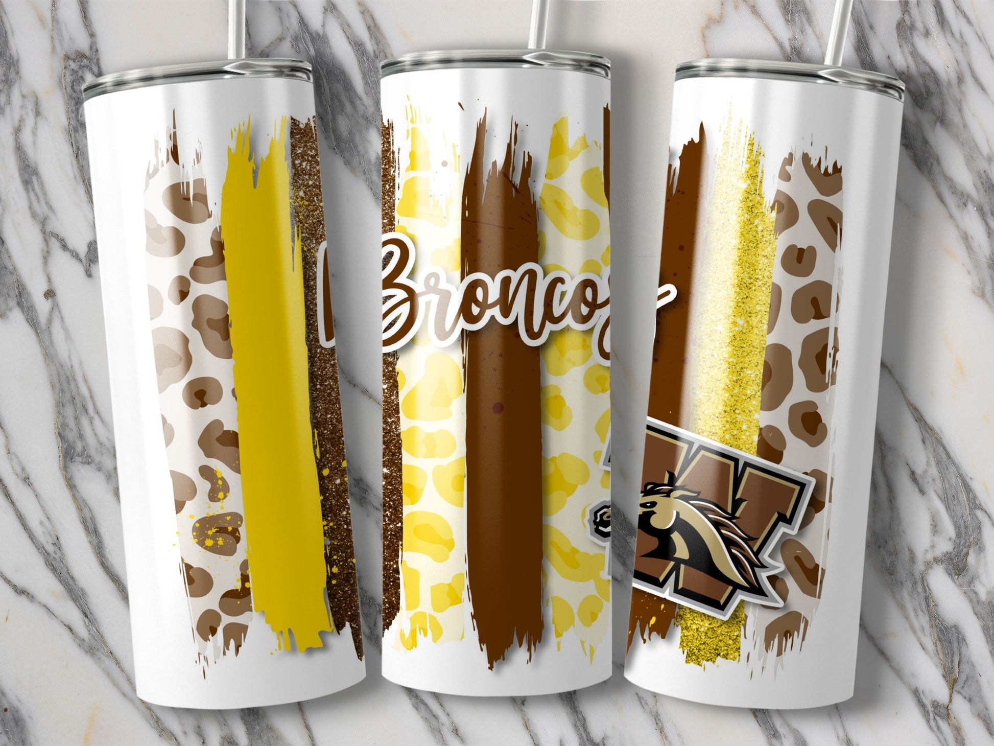 Broncos Logo Leopard Animal Print Gold Stripes Brush Tumblers