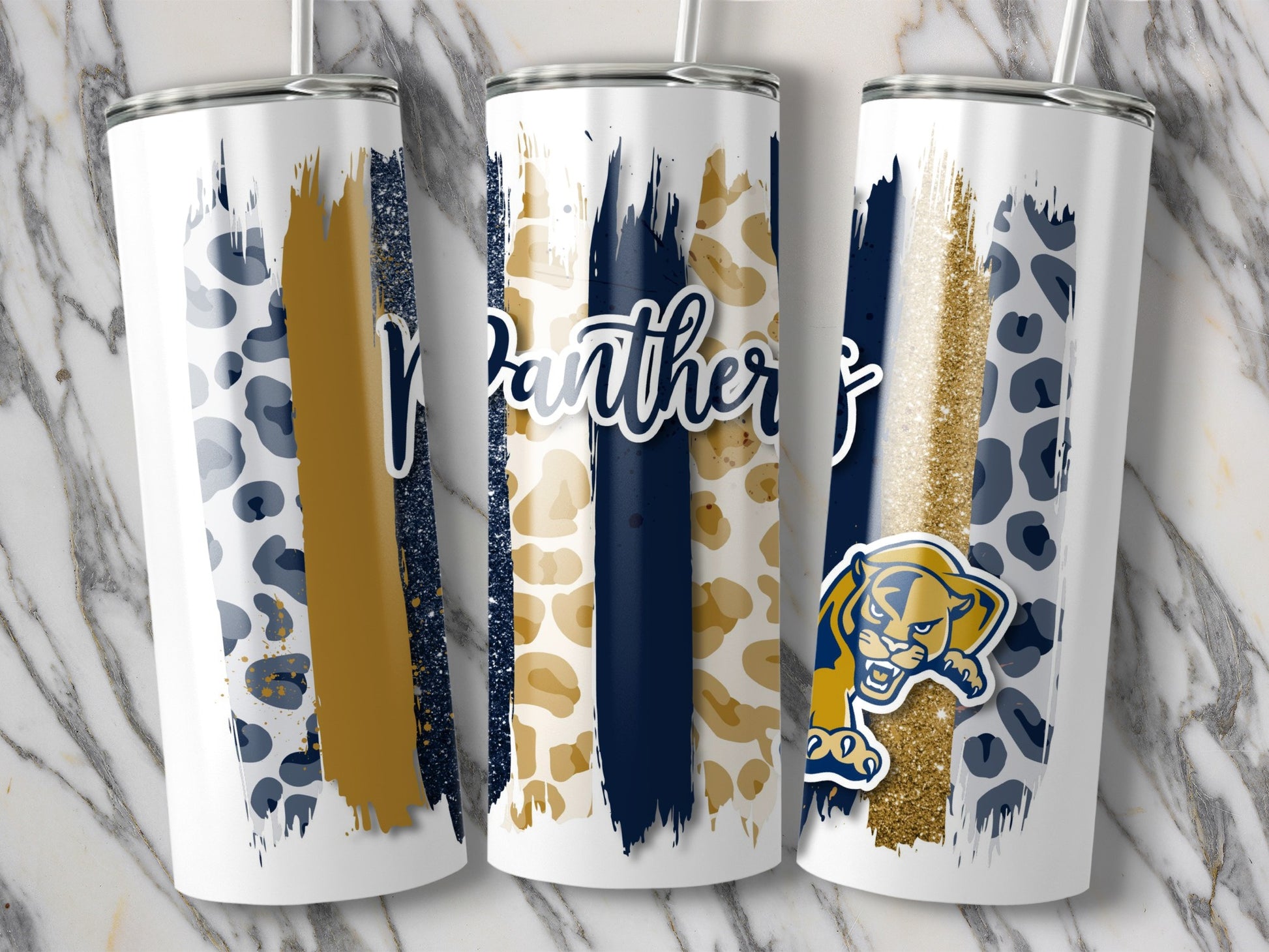 Panthers Leopard Stripes Gold Accent With Panther Tumblers