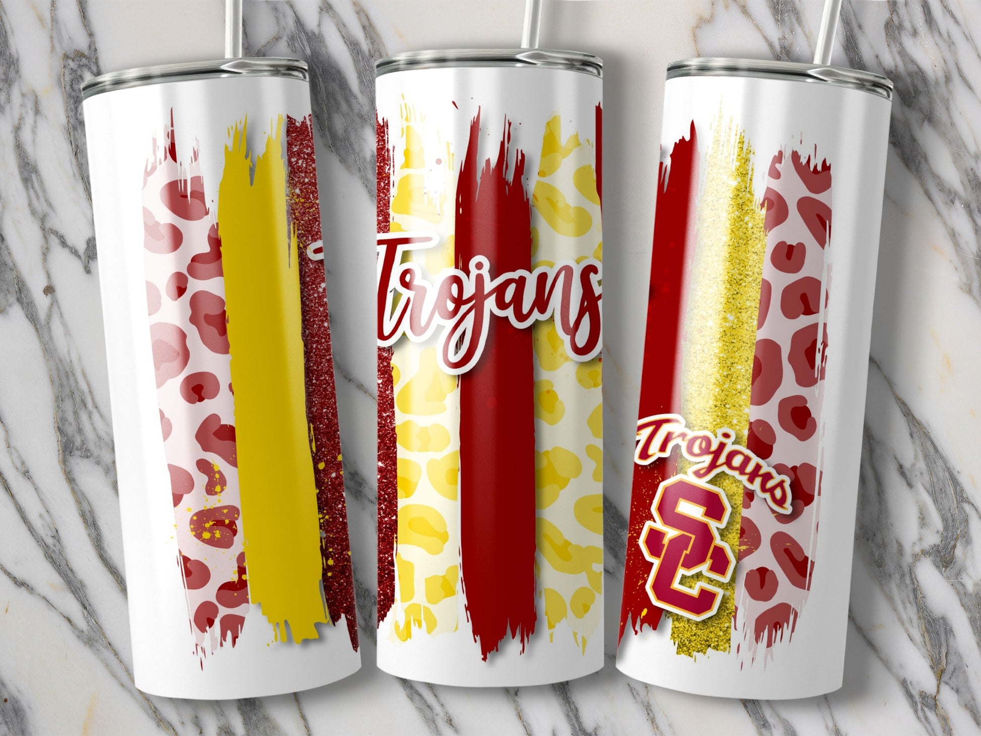Trojans Brushstrokes Cheetah Prints Image Tumblers