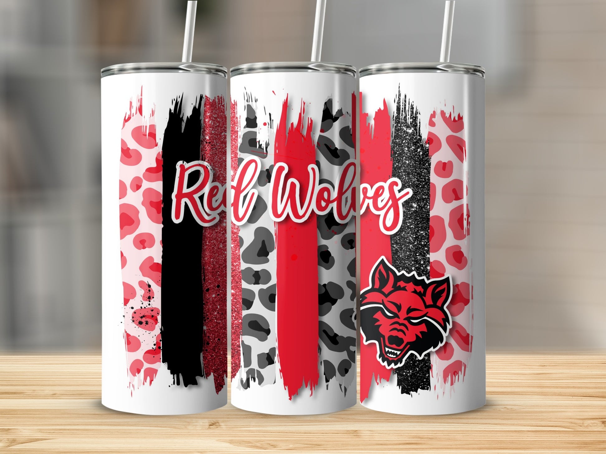 Red Wolves Brush Strokes Leopard Glitter Design Tumblers
