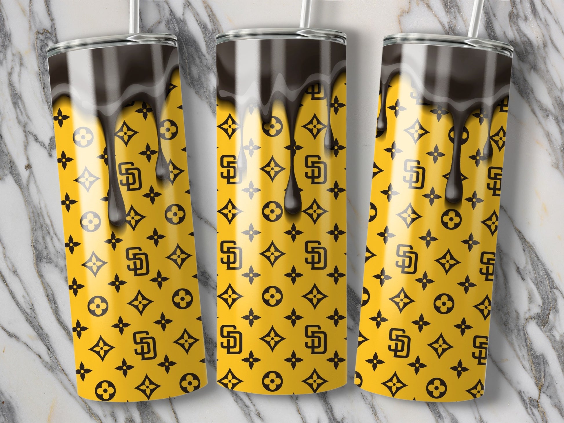 Elevate your beverage experience with these designer inspired tumblers. The unique pattern features the SD Padres logo along with elegant floral elements, creating a striking and luxurious design. The added touch of chocolate drip adds a playful and stylish detail. Perfect for sports fans, fashion enthusiasts, or anyone who appreciates unique and eye catching drinkware.