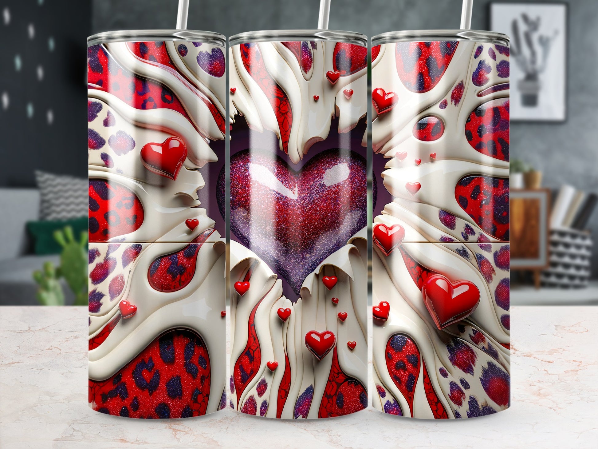 Heart Surrounded With Leopard Valentine's Day! Hearts With Cream Red Design Valentine's Day Tumblers
