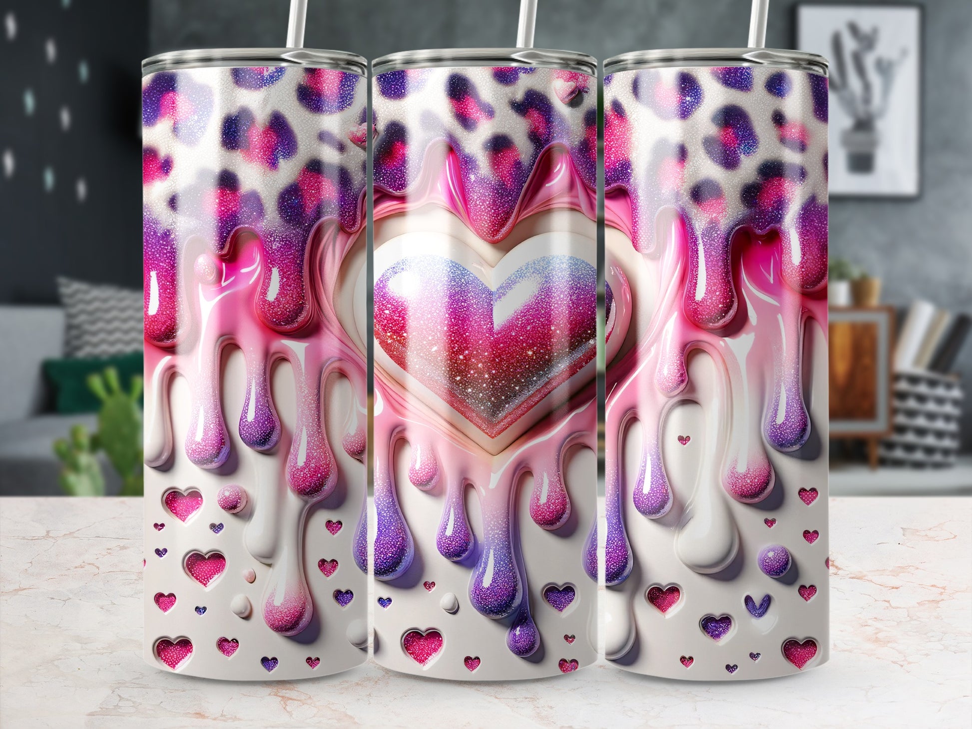 Cute Drips Heart Leopard Valentine's Day! Dripping Love Heart With Pink and Purple Colors Tumblers