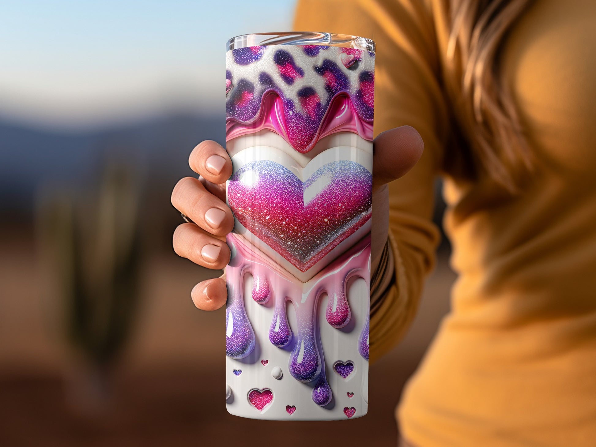 Show your affection with this Dripping Love Heart Tumbler that's sure to melt hearts. Featuring a unique design with pink and purple drips and a heart to boot, it is a great choice.