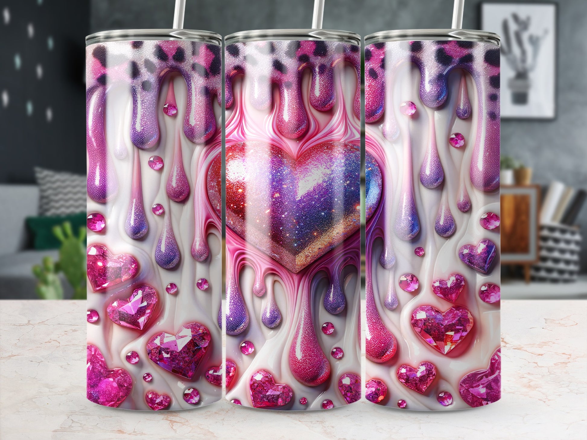 Capture the essence of love with these tumblers featuring a dripping hearts and gems design. The rich colors and glittery effect make this tumbler a standout piece perfect for any occasion.